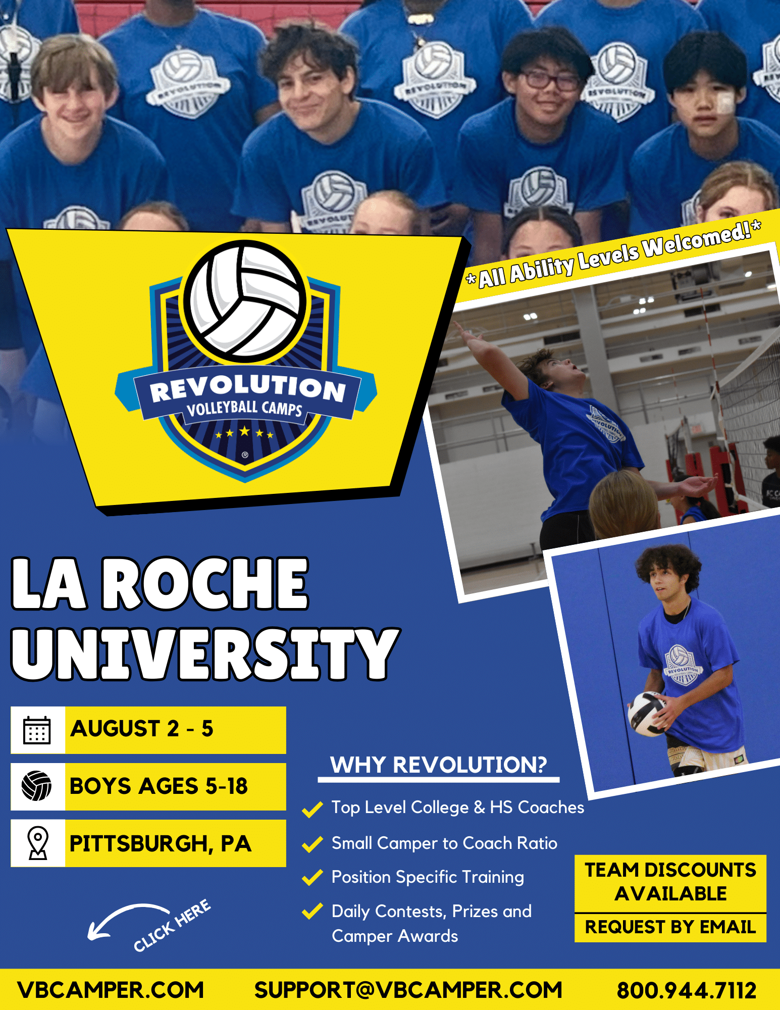 Kettler Gym, located on the beautiful La Roche University campus, is used for Intramural Sports, fitness, and recreation. We’re excited to host the Revolution Volleyball Camps at La Roche University. Join us and have fun while improving your volleyball skills this summer!