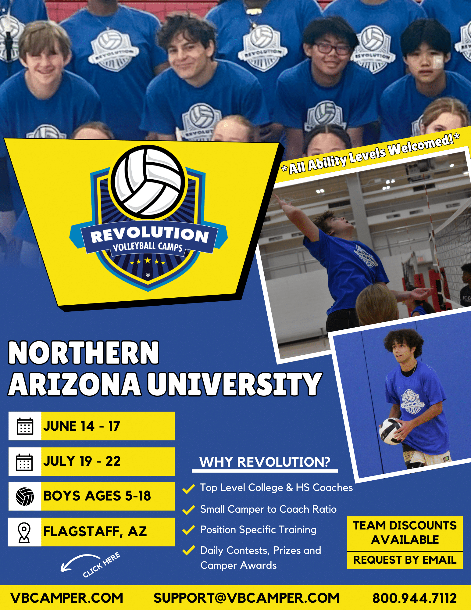Flagstaff, AZ Area Boys Volleyball Camps at Northern Arizona University