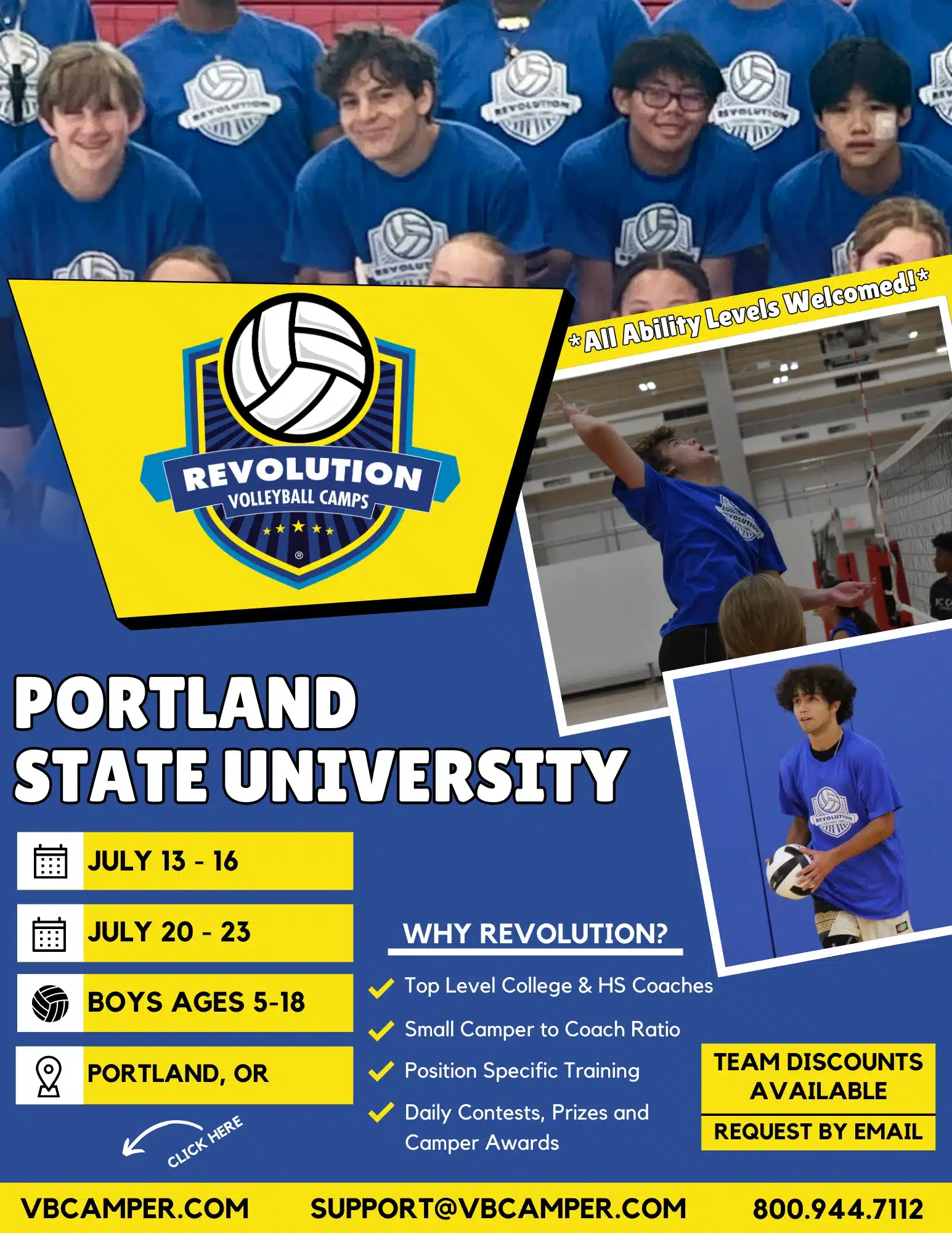 Portland Area Boys Volleyball Camps at Portland State University