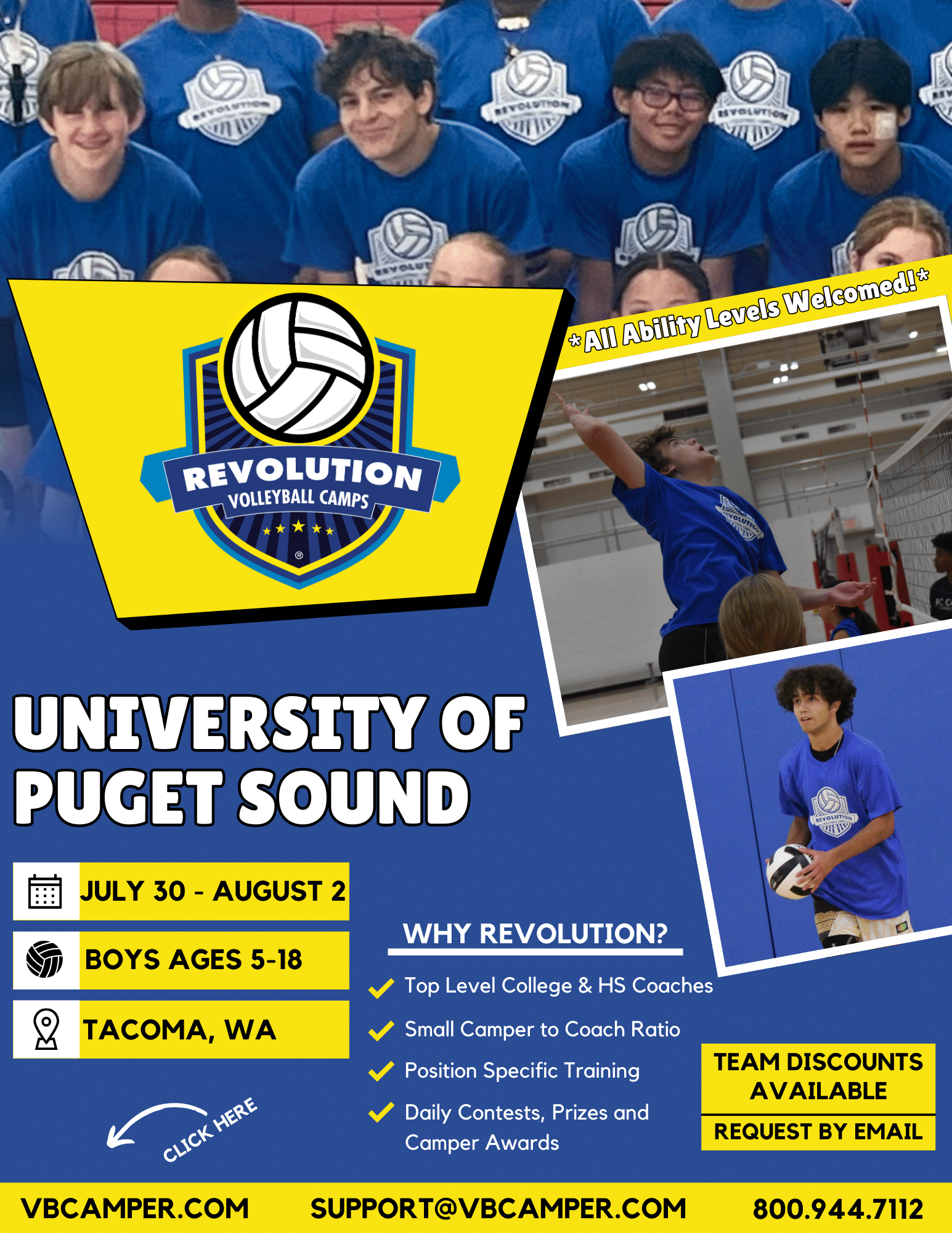 Revolution Volleyball Camp is open to kids & teens ages 5 to 18.