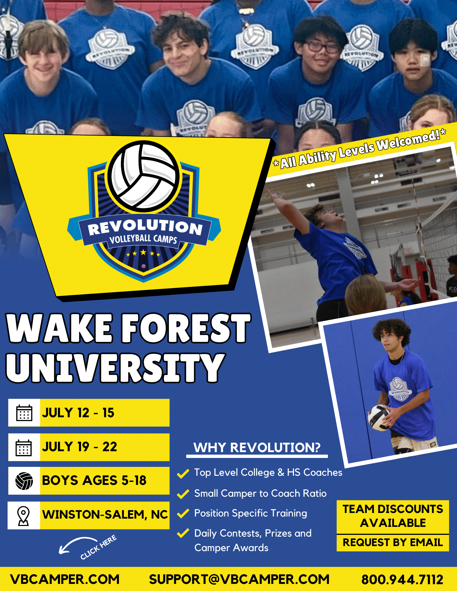 Winston-Salem, North Carolina Area Boys Volleyball Camp at Wake Forest University