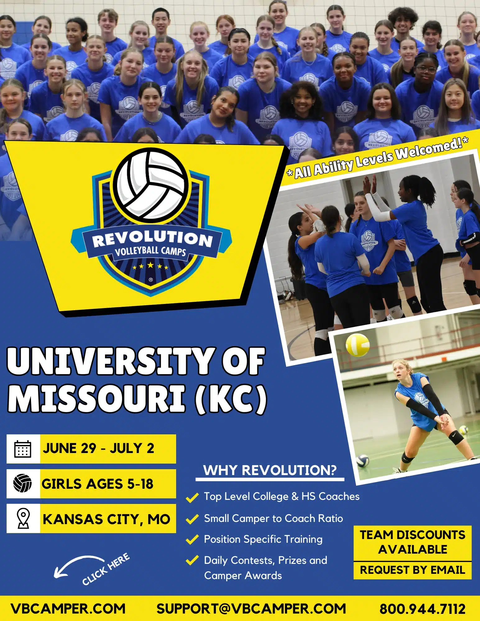 Revolution Volleyball Camp is open to kids & teens ages 5 to 18.